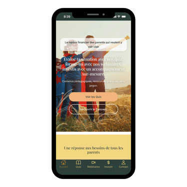 OP! est le repère financier des parents. C'est une application mobile gratuite qui t'aide à comprendre ta situation financière, prendre de meilleures décisions pour ta famille, et passer à l'action — le tout sans jargon et sans pression. Concrètement : des quiz qui font le point sur ta situation, des webinaires animés par un vrai expert patrimoine, et la possibilité d'être accompagné individuellement si tu le souhaites.